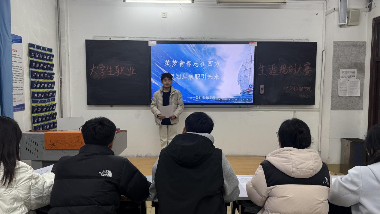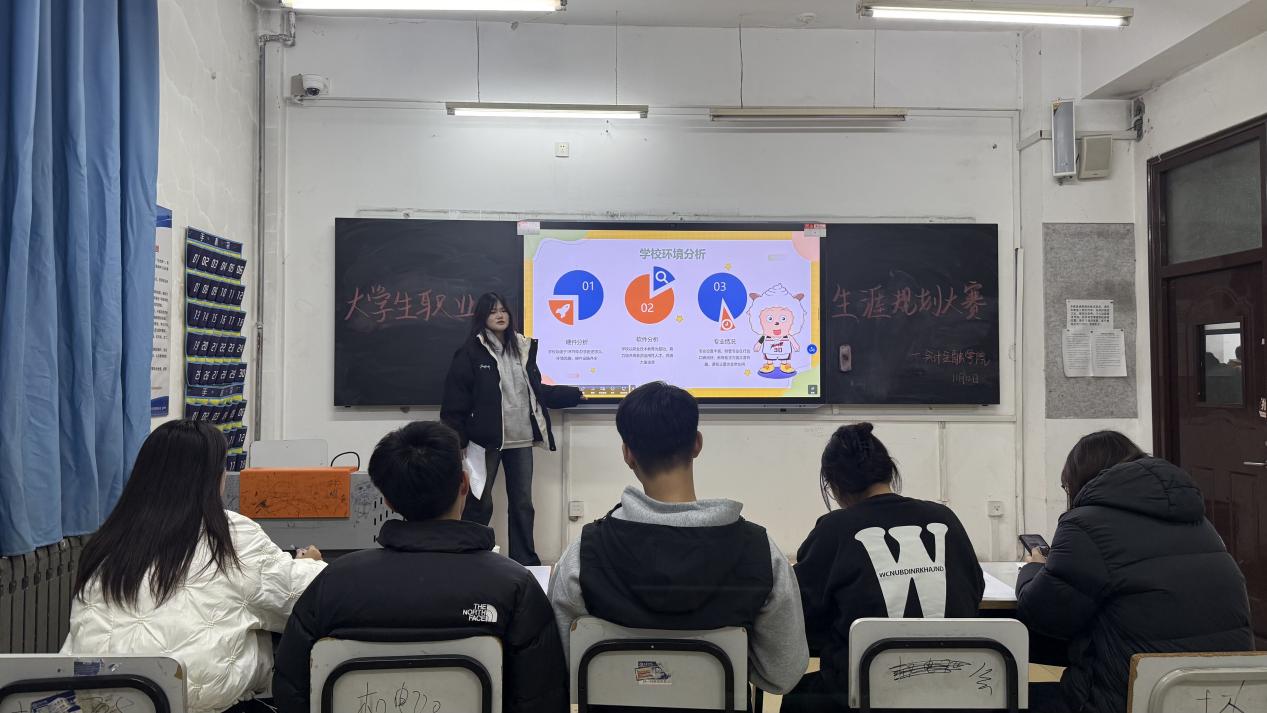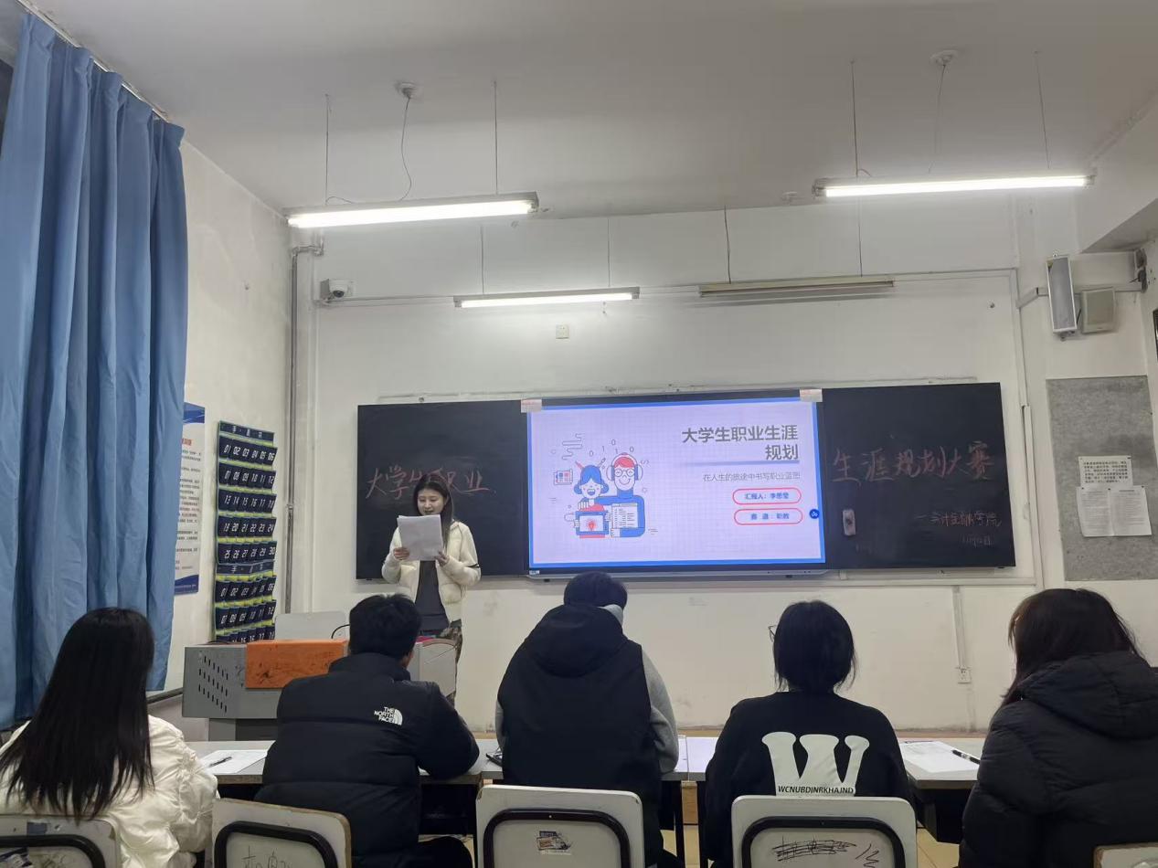 为强化我院学生职业生涯规划意识、引导学生树立科学职业观,学院围绕 “促就业、强能力、谋发展”核心目标,以深化学生职业规划思维为抓手,着力提升学生就业核心素养与职场适应能力。11月13日晚6时,我院大学生职业生涯规划大赛决赛在1号教学楼128教室举行。经过初赛的层层筛选,9位选手脱颖而出。